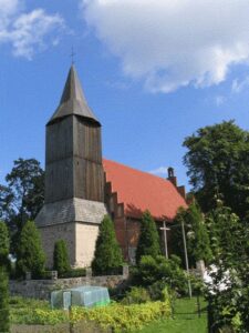 Die katholische Pfarrkirche Maria Magdalena, ein schlichter Backsteinbau auf Feldsteinsockel, wurde 1500 geweiht. Anbau des Chors und einer Vorhalle im Süden 1936, wobei man den alten Nordeingang dabei zumauerte. Alte Sakristei im Norden. Turm aus Holz auf Feldsteinunterbau, 18. Jh.
