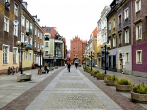 Im Zentrum der Altstadt liegt der Alte Markt. Die Bürgerhäuser um ihn herum brannten nach der Einnahme der Stadt 1945 ab. Ihre Fassaden wurden 1950 – 1955 in Anlehnung an ihr Aussehen in der Barockzeit wiederaufgebaut. Vier Häuser sind mehr oder minder original erhalten, davon eines mit Spitzbogenlauben.