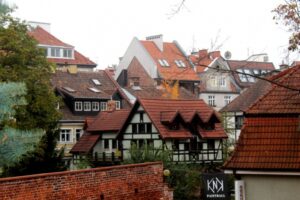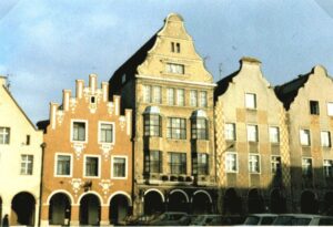 Die Laubenhäuser an der Nordostseite des Marktes, Adler-Apotheke und ehemaliges evangelisches Pfarrhaus, erhielten ihr Aussehen um die Mitte des 18. Jhs.