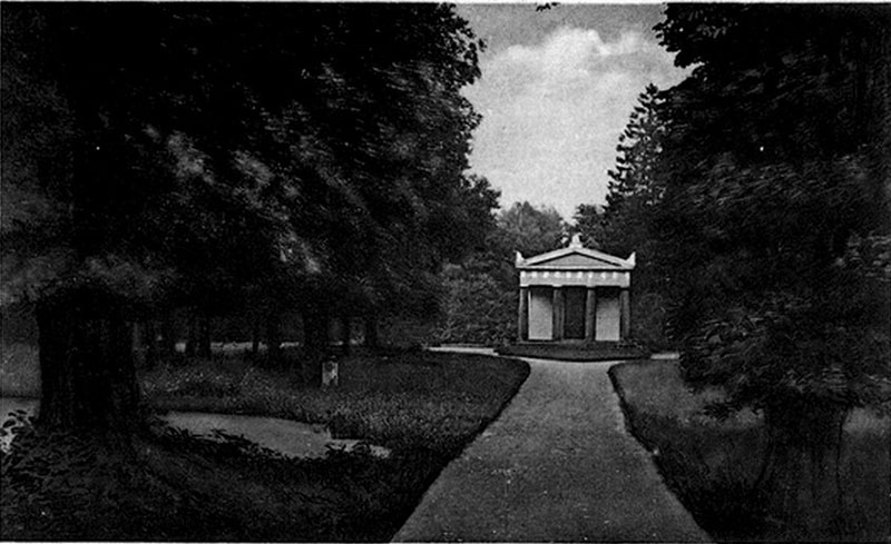 Der Park umfasste eine Fläche von 150 ha. In seiner Mitte erhob sich auf einer kleinen Anhöhe ein dorisches Tempelchen, das in seinem Innern eine Nachbildung der Laokoongruppe barg. Am Rande befand sich die Grabstelle für Fritz v. Fahrenheid und seinen Freund von Salpius, errichtet nach dem Vorbild der Humboldt-Grabstätte an dem kleinen Schlösschen in Berlin-Tegel mit der Nachbildung einer Figur des dänischen Bildhauers Bertel Thorwaldsen auf einer hohen Säule. Den Grabstein zierte der Spruch: