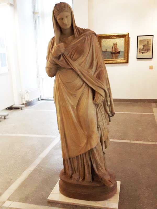Nach der Eroberung durch die Rote Armee wurden die Sammlungen von sowjetischen Trophäenkommissionen requiriert, soweit sie nicht zerstört worden waren, und das Schloss, das den Krieg weitgehend unbeschadet überstanden hatte, brannte nieder und wurde abgerissen. Der Verbleib der Exponate ist weitgehend unbekannt. Manches mag von privaten Liebhabern vereinnahmt worden sein. Immerhin existiert mit Sicherheit noch eine Statue, die lange Jahre in einer Nische im Turm des Gärtnerhauses ihr Dasein fristete. Es handelt sich um den Abguss der sog. Großen Herkulanerin, die seit 2003 vor dem Antiquitätenladen im Wrangelturm von Königsberg stand und deren Inhaberin die Statue polnischen Antiquitätensammlern abgejagt hatte.[1] Das Original der Statue ist eine Werk eines Bildhauers aus dem 1. Jh. n. Chr., das auf ein griechisches Vorbild um 300 v. Chr. zurückgeht und gehört zu den bekanntesten Stücken der Dresdner Skulpturensammlung im Albertinum. Gefunden wurde die Figur 1709 beim Brunnenbau unterhalb des Vesuv und entpuppte sich als eine von drei Gewandstatuen des Theaters von Herculaneum, das 79 n. Chr. unter einer dicken Lavaschicht begraben wurde. Sie gelangte 1713 in die Sammlung von Prinz Eugen von Savoyen-Carignan und von dort 1736 in die Antikensammlung des sächsischen Kurfürsten August Friedrich II. nach Dresden. Heute ist sie Bestandteil der Kunstsammlung der Kaliningrader Kunstgalerie in der Börse.