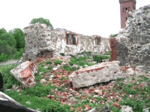Im Park soll es noch 2 Grabplatten geben, davon eine mit dem Fahrenheidschen Wappen. An der Parkgrenze entstand ein großes landwirtschaftliches Wirtschaftsgebäude im Stil einer Ordensburg mit Stallungen und einer großen Scheune, konzipiert von dem Architekten Hermann Gemmel (1814 – 1868), dessen Ruine heute eindrucksvoll den Blick über das Anwesen dominiert.