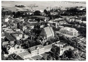 Auf einer Halbinsel des Geserichsees (jez. Jeziorak) legte der Orden einst einen Hof und eine Mühle an. Daneben gründete 1305 der Christburger Komtur Sieghard von Schwarzburg das kleine Städtchen Dt. Eylau, das man später als die “Perle des Oberlandes” bezeichnete und das zur größten Stadt im Landkreis Rosenberg anwuchs. Die dazugehörige Handfeste von 1317 ist allerdings nicht mehr vorhanden.