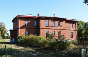 Das zweigeschossige Herrenhaus aus rotem Backstein entstand um 1900 und beherbergt heute eine Schule.