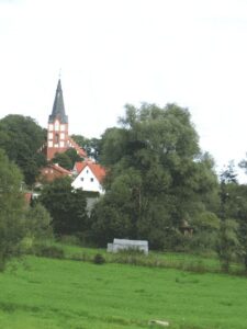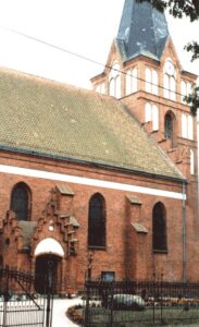 Eine erste Kirche gab es mindestens seit dem Ende des 14. Jhs., aber über die Pfarrgemeinde ist in der Anfangszeit wenig bekannt. Erstgenannter Pfarrer bis 1420 war Jacobus Rogenschütz. Der nächste Kirchenbau entstand um 1580 und wurde der Kreuzauffindung und Mariä Heimsuchung geweiht. Es war eine kleine Kirche, aber sie reichte für die Bedürfnisse der Einwohner bis 1886, als man sie zum Zwecke eines Neubaus abriss. Dieser Bau von 1892, geweiht 1896, existiert bis heute.