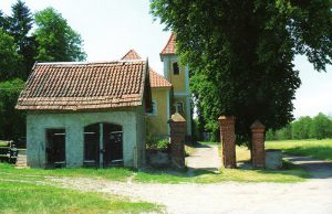 Die Kirche des Dorfes wurde 1752 als Ziegelbau errichtet, der Turm später an der nördlichen Längsseite angebaut (an der südlichen Hälfte in das Schiff eingezogen?[1]. Eine Glocke von 1697 trug oder trägt den Namen des Patrons von Finckenstein. Heute ist die Kirche katholisch.[2]