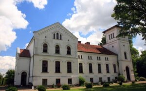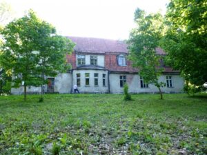 Das Gutshaus entstand spätklassizistisch 1829 und wurde 1861 unter O. V. von Printz im Stil der Zeit italienisierend umgebaut. Letzter deutscher Besitzer des nur noch 250 ha umfassenden Gutes war Klaus Wegel.