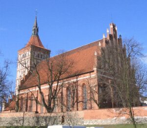 - Ein Kronleuchter aus dem Geweih eines 16-Enders, der anlässlich einer Jagd in die Kirche geflüchtet sein soll, wurde 1598 von einem Simon Lange gestiftet und hängt in der südlichen Eingangskapelle. Er wird für einen der frühesten dieser Art in Ostpreußen gehalten