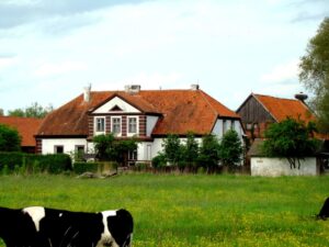 Die Gemeinde Löwenstein wurde unter dem Hochmeister Winrich von Kniprode 1366 gegründet und feierte im Jahr 2016 ihr 650jähriges bestehen. An den Jubiläumsfeierlichkeiten nahmen neben etlichen früheren und jetzigen Pfarrangehörigen auch der Woiwode von Warmia i Mazury, Artur Chojecki, teil.[5] Diese oder eine weitere Handfesteerhielt die Siedlung 1386 vom Komtur von Balga. Hier im Dorf hatte sich sehr rein die ursprüngliche Anlage als Angerdorf erhalten, der Anger zwischen 2 parallelen Straßen und den Gehöften an den Außenseiten. Auf dem Anger befanden sich Kirche, Krug, Schmiede und später die Schule.