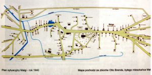 Über eine Schule verfügte Malga seit 1735. Sie war zuletzt zweiklassig. Der Teil westlich der Malgaer Kirche war am stärksten besiedelt. Am Dorfende teilte sich die Dorfstrasse in Abzweige nach Omulefofen und Malgaofen. Nach Norden führte ein Weg nach Dembowitz/Eichenau. Alle Hauptstraßen des Dorfes waren bis weit vor die Tore mit der aus dem Eisenwerk vorhandenen Schlacke gepflastert. 1939 lebten in Malga 481 Einwohner.[3]