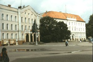 Die Tilsiter Dragonerkaserne, errichtet in den 1870er Jahren entlang der Bahnhofstrasse und 1879 erstmals von dem Dragonerregiment „Prinz Albrecht von Preußen“ Nr. 1 bezogen, barg einen überraschenden Schatz. Bei Renovierungsarbeiten der Eingangshalle stieß man unter mehreren Farbschichten auf alte Wandbemalungen mit goldenen Buchstaben und mannshohen Reliefs[1]. Die St. Petersburger Restauratorinnen Tamara Mitina und Veronika Sauer legten sorgfältig 36 Gedenktafeln mit heraldischen Verzierungen, Eisernen Kreuzen und Preußenadlern frei – Darstellungen von Schlachten, an denen das Dragonerregiment seit seiner Gründung 1717 teilgenommen hatte. In den Freiheitskriegen hatte dieses Regiment Seite an Seite mit den russischen Waffenbrüdern an den Schlachten von Preußisch Eylau und Heilsberg teilgenommen und gemeinsam mit den Russen zog man siegreich in Paris ein.[2] Die Stadtgemeinschaft Tilsit hat eine Broschüre „Die Tilsiter Dragoner“ herausgegeben, die auch den spektakulären Fund behandelt und Aufschluss über die historische Vergangenheit des Regiments gibt.[3]