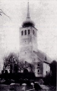 Das 1574 gegründete Kirchspiel blieb noch ein Jahr mit Tilsit verbunden und hatte seit Ende des 16. Jahrhunderts einen eigenen Pfarrer. Die Tataren kamen im schwedisch-polnischen Krieg bis hierher und zerstörten die Kirche. Vom Wiederaufbau einer Fachwerkkirche wird 1656 berichtet. 1736 plante man die Errichtung einer massiven Kirche, deren Ausführung unter Verwertung älteren Mauerwerks 1744 erfolgte. Es war ein einfacher verputzter Saalbau, zunächst mit einem hölzernen Kuppelturm, der 1853 repariert werden mußte und 1906 durch einen massiven Turm ersetzt wurde, der mit einer barocken Haube (Wetterfahne : 1907) abschloß.