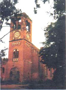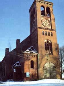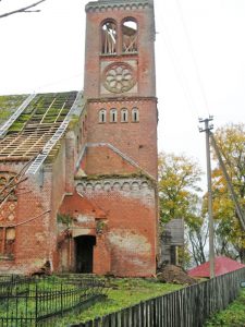 Die neue Kirche, eingeweiht im Juli 1900, war ein roter Backsteinbau im Rundbogenstil mit spitzen Turm, in dem sich zwei Glocken befanden, und polygonal geschlossenem Chor im Osten. Der Innenraum hatte eine trapezförmige Decke aus Holz. Auf der Westempore befand sich die in der Werkstatt von Terletzki gebaute Orgel, an der Nord- und Südwand liefen Emporen entlang. Der Altar, der unter Verarbeitung älterer Schnitzwerke geschaffen worden war, stand erhöht, darüber erhob sich ein hohes Kreuz. Rechts vom Altar befand sich die Kanzel, die von der Sakristei aus bestiegen werden mußte. Von der Decke herab hingen zwei große Leuchter. Die Kirche wurde nach dem 2. Weltkrieg als Speicher genutzt und existiert noch.[1] Letzter deutscher Pfarrer war Hans Kuhrke.