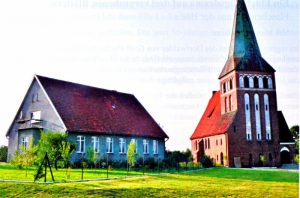 Durch die verwendeten Materialien erhielt die neue Kirche ein fast mittelalterliches Gepräge: die Ziegelsteine haben das im Mittelalter übliche größeres Format und die Dachziegel bilden die Sonderform “Mönch und Nonne”. Von der Ausstattung der alten Kirche übernahm man die Orgel, den Altar, die Glocken und ein altes Weihwasserbecken. Die Orgel aus der Zeit um 1750, wohl von Adam Gottlob Casparini angefertigt, stand ursprünglich in Haffstrom südlich von Königsberg, wurde von dort 1851 erworben und nach Scharnau versetzt. Die drei Glocken wurden 1881 in Kulm gegossen, wobei unklar ist, ob sie die Kriegswirtschaft des 2. Weltkriegs überlebt haben. Das Gestühl von ca. 1560 ist wohl verloren, aber der geschnitzte Altar von etwa 1700 existiert noch, wenn auch umgestaltet. Die Kirche wurde 2007 – 2015 renoviert. (Heimatbrief Weihnachten 2018)