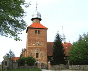 Den Anbau der Kirche von 1913 hat der in Schönfelde im Kirchspiel Schönbrück gebürtige Weihbischof Eduard Herrmann eingeweiht. Von dessen Stiefbruder Leopold ist auf dem Schönbrücker Friedhof noch ein sehenswertes Grabkreuz erhalten. (Helmut Herrmann)