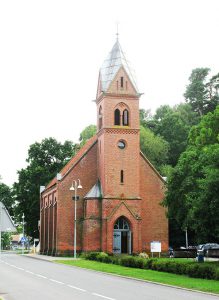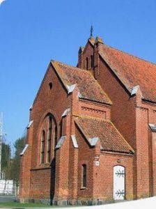 Auf der Kurischen Nehrung wurden im Verlauf von 300 Jahren 7 Dörfer von Wanderdünen verschüttet, bevor man im 19. Jh. die Dünen befestigte. Von der einst 80 km langen Zone der Wanderdünen blieb nur eine Strecke von 35,5 km übrig[3] In Karwaiten gründete man 1740 ein eigenes Kirchspiel. Als auch Karwaiten von Dünensand zugeschüttet worden war, verlegte man den Kirchspielort 1794 nach Schwarzort und errichtete dort eine Kirche aus Holz, die am 28. Juni 1795 geweiht wurde. Diese brannte 1878 ab Eine neue Kirche entstand 1884/85 als neogotischer Backsteinbau mit Chor und Turm. In der sowjetischen Nachkriegszeit diente die Kirche, immerhin erhalten, als Getreidespeicher.[4] Die alte Ausstattung ist vernichtet. Seit 1989 ist die einstige evangelische Kirche ein katholisches Gotteshaus und Museum,[5] aber schon 1991 übergab man sie der Evangelischen Kirche Litauens. 1995-1996 konnte die Kirche mit Hilfe von Spenden, vornehmlich von deutschen Schwarzortern, restauriert werden.