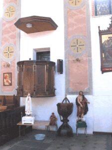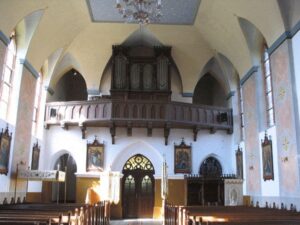Die Jakobus d. Ä. geweihte Kirche wurde 1680 – 1689 in Stein gebaut und ersetzte damit einen abgebrannten hölzernen Vorgängerbau.